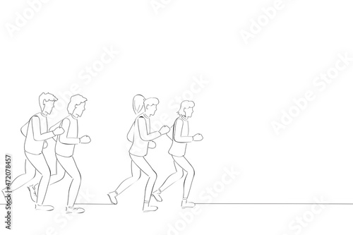 Marathon runners isolated on white background. For web site, poster, placard, print material and mobile app. Creative art, modern drawing concept, vector illustration