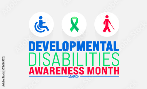 March is Developmental Disabilities Awareness Month background template. Holiday concept. use to background, banner, placard, card, and poster design template with text inscription and standard color.