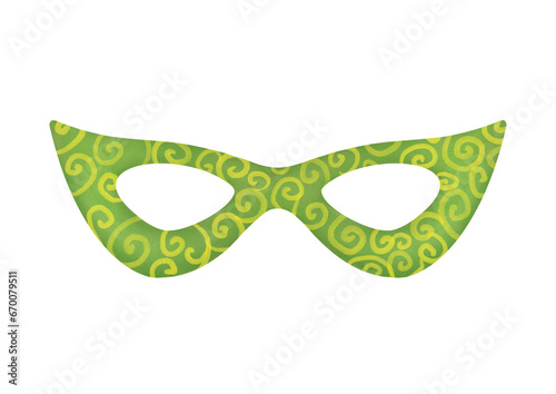Mardi Gras green carnival mask clip art. fat tuesday carnival mask cut out. festival masquerade accessories isolated on transparent background illustration. Opera and theater costume element