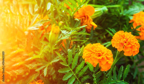 Marigolds flowers. green leaves. celebration. gift.