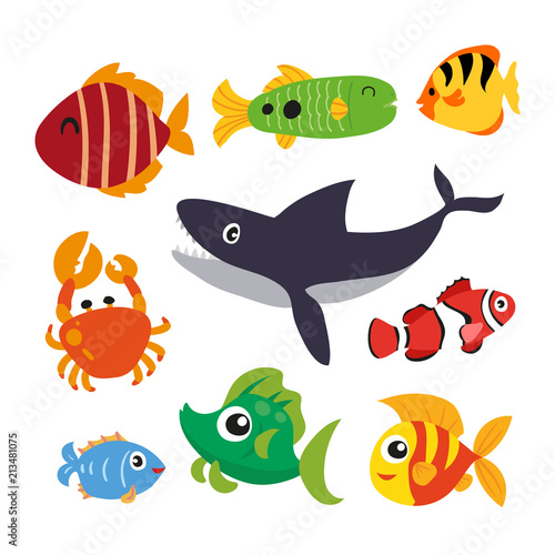 fauna, crab, shark, fish, isolated, aquarium, aquatic, water, marin, marine life, ocean life, sea, ocean, tropical, underwater, travel, vector, character, animal, illustration, isolate, cartoon, design, art, draw, colours, group, drawing, collection, graphic, nature, icon, wildlife, cute, funny, happy, smile, set, natural