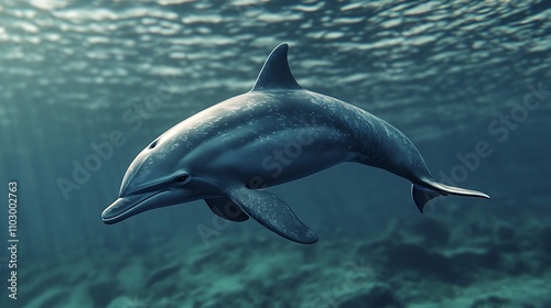 Marine Wildlife Dolphin Realistic 3D Ocean Scene Beautiful Underwater Render Illustration