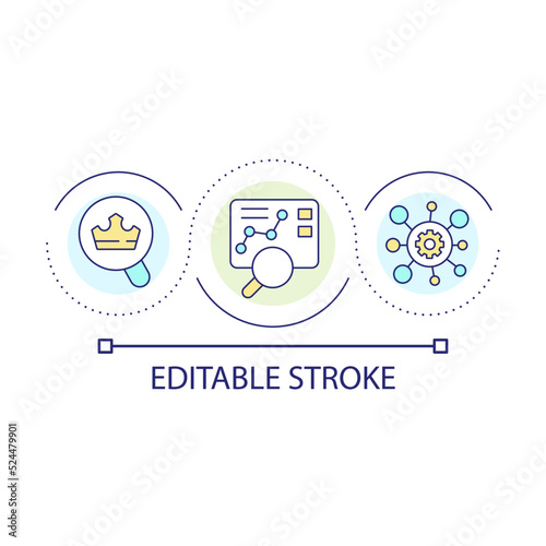 Market data analysis loop concept icon. Research financial information. Successful business strategy abstract idea thin line illustration. Isolated outline drawing. Editable stroke. Arial font used