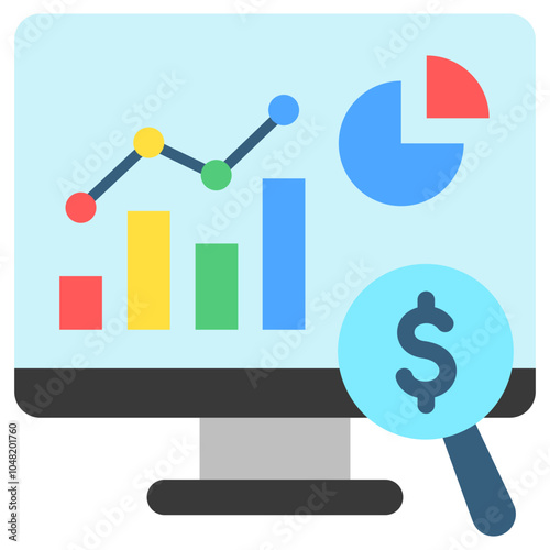Market Research flat color icon, use for UI, UX, app and web development, digital or print. for industry, education, business, finance, economic development theme.