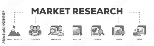 Market research icon infographic illustration concept with icon of target markets, customer, evaluation, analysis, statistics, survey and trend icon live stroke and easy to edit