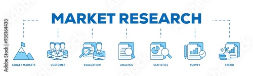 Market research icon infographic illustration concept with icon of target markets, customer, evaluation, analysis, statistics, survey and trend icon png and easy to edit