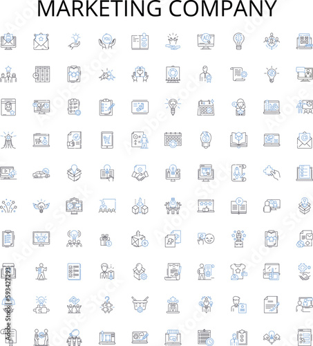 Marketing company outline icons collection. Marketing, Company, Advertising, Promotion, Strategies, Branding, Consultancy vector illustration set. Consumers, Services, Brand linear signs