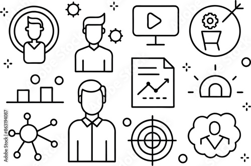 strategy, illustration, management, marketing, business, vector, design, web, outline, content, woman, technology, communication, character, mobile, social, website, digital, man, flat, media, isolated, icon, concept, person, creative, blog, advertising, people