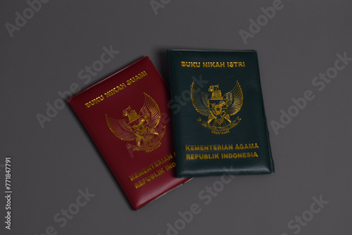 Marriage Book, Husband and Wife, Ministry of Religion of the Republic of Indonesia isolated on grey background
