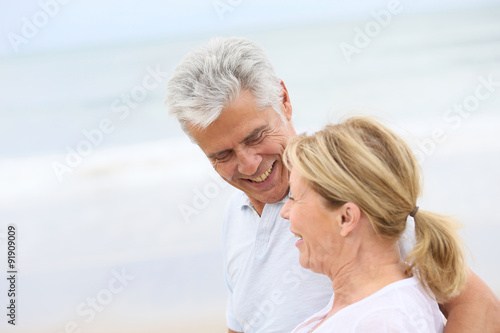 Married senior couple walking in the beach