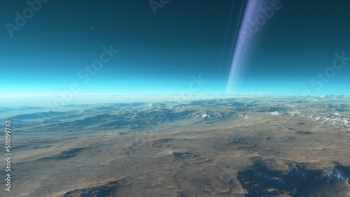 planet, alien, space, landscape, fantastic, aurora, light, moon, mars, satellite, surreal, bizarre, crater, surface, fog, gas, atmosphere, mystery