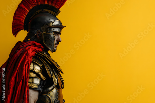 Mars on the Battlefield: Roman God of War in Armor yellow background