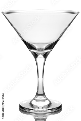 Martini glass on a white glossy background isolation