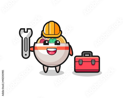 Mascot cartoon of noodle bowl as a mechanic