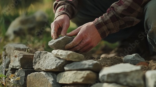 mason, building, stone, wall, garden, skill, patience, masonry, work, construction, landscaping, content, placing, mortar, tool, visible, highlighting