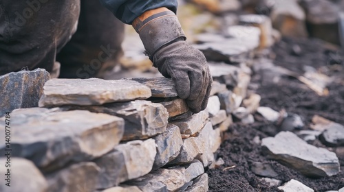 mason, laying, stone, garden, wall, strength, structure, masonry, building, project, landscape, architecture, masonry, optical, scene, show, carefully, placing