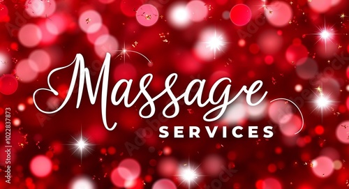 Massage services calligraphic lettering on red bokeh glitter festive sparkles background
