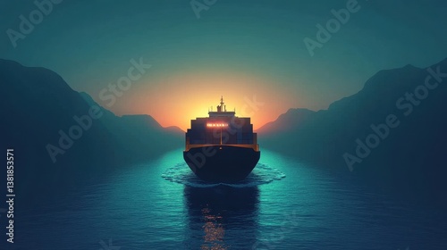 container, massif, maritime, transport, design, animation, freighter, global, export, import, navigation, commercial, seascape, largely, transportation, route, international, structure, front, dock
