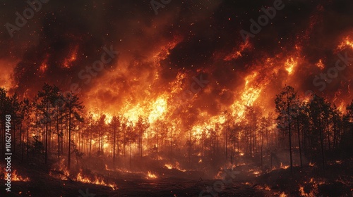 massive, wildfire, forest, flames, rising, hyper, realistic, fire, smoke, destroy, hot, ignite, bushfire, hazard, blaze, hell, pollution, wood, climate, smoky, grass, mountain, emergency, carbon, summer, ecology, black, danger, orange, pine, environment, damage, wild, apocalypse, inferno, problem, red, bush, nature, night, tree, burnt, destruction, burn, disaster, heat, outdoors, dry