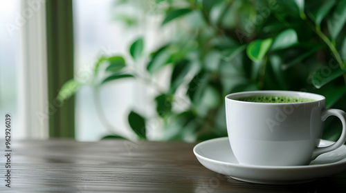 matcha, green, tea, latte, cup, hot drink, drink, white, beverage, breakfast, hot, mug, flower, food, teacup, morning, table, espresso, cafes, healthy, saucer, caffeine, flower, spoon, leaf, closeup, brown