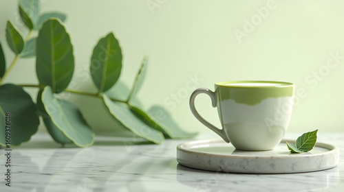matcha, latte, green, tea, leaf, minimal, healthy, detox, wellness, foam, relaxing, ceramic, clean, modern, fresh, smooth, beverage, stylish, elegant, natural, organic, cup, indoor, simple, calming, bright, refreshing, morning, composition