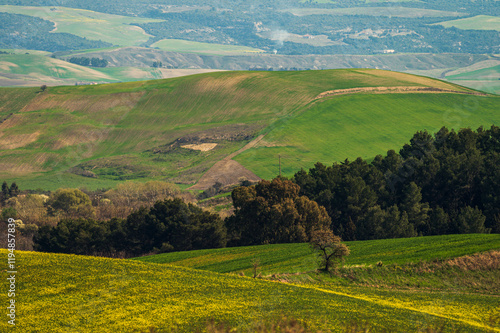 hillside, plowed, rural, rural area, cloud, house, agriculture, spring, view, rural scene, road, grass, farm, land, italy, meadow, sky, green, nature, countryside, tree, hill, sunlight, field, matera, calmness, vale, country road, landscape, basilicata, church