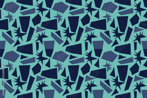 Matisse abstract shapes seamless pattern.Cutout shape of stars and rectangles into a pattern. Organic abstraction in blue color flat style. The style of Henri Matisse.