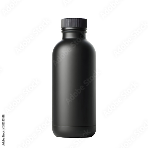 Matte black water bottle with a minimalist design.isolated on white background