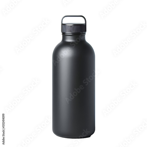 Matte black water bottle with a minimalist design.isolated on white background