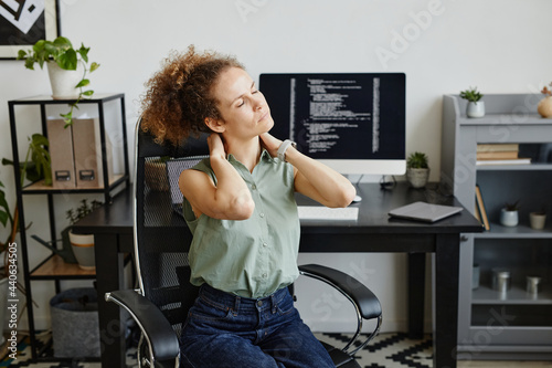 indoor, working, technology, office, casual clothes, sitting, occupation, adult, computer, businessperson, business, new business, young adult, creativity, professional occupation, lifestyle, looking, desk, woman, cyberspace, curly hair, businesswoman, small business, entrepreneur, happiness, smiling, table, home interior, confidence, missy, electronic mail, relaxation, chair, sleepy, exhaustion