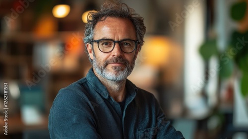 Mature Man Portrait Confident Professional Office Background Casual Business Attire