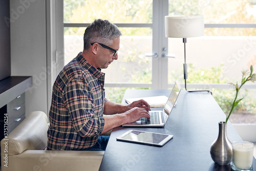 business, businessman, casual attire, computer, cool, desk, eyeglass, goggles, grey, hair, hip, home, home office, horizontal, inside, interior, laptop, luxury, mature, office, online, style, stylish, technology, window, working, grey hair, caucasian, white, man, male, person, people, adult, adult, 40s, grown-up, middle-aged