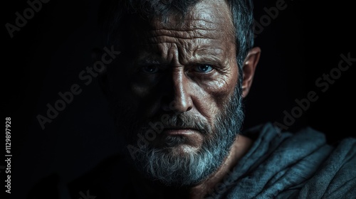 philosopher, stoic, ancient, wisdom, cognition, history, portrait, man, chiaroscuro, toga, eye, dramatic, intriguing, thoughtful, serious, lighting, timeless, grey hair, bearded man, grey, beard, high, contrast, close, antique, vintage, face, art, greece, old, powerful, gaze, piercing, sharpened, intense, thought, seriousness, intellectual, depth, culture, human, dignity, thoughtfulness, artistic, photo, quality