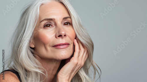 woman, mature, beauty, silver, hair, portrait, elegant, graceful, ageing, senior, confident, reflective, thoughtful, style, fashion, skincare, make-up, lipstick, natural, serene, wise, experienced, dignified, wellness, health, sophistication, timeless, poise, calm, contemplative, composed, feminine, wisdom, allure, charme, grace, finesse, individuality, stylish, classic, calmness, softness, femininity, strength