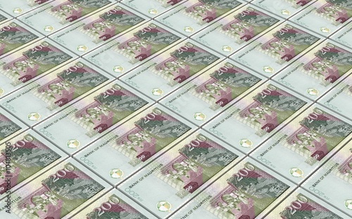 Mauritian rupee bills stacked background. Computer generated 3D photo rendering.