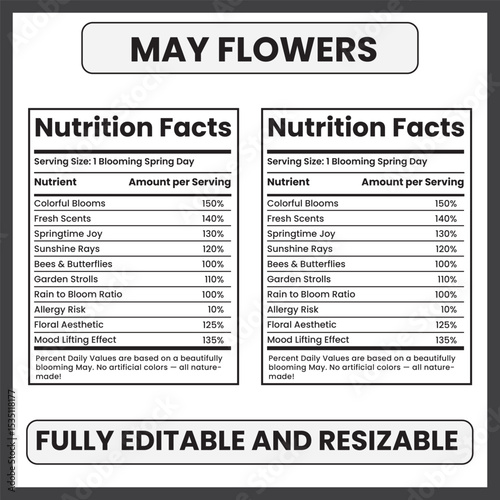 may flower nutrition facts spring flower nutrition label floral nutrition facts template flower wellness facts botanical nutrition facts may blooms infographic springtime health concept