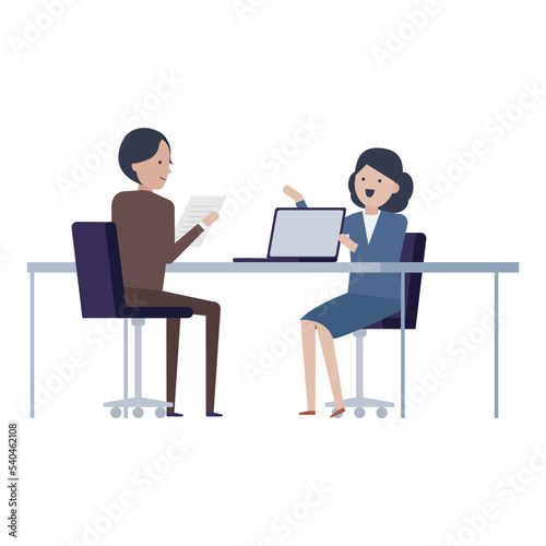 consultation, version, woman, man, contract, proposal, presentation, refer, inducement, estimate, bargaining, suit, businessman, adviser, client, planner, employee, salaried employee, business, personal computer, desk, office, city hall, boardroom, smile, work, consultancy, counseling, interview, recruitment, career woman, two people, japanese, asian, insurance, finance, investment, illustration, flat
