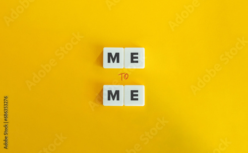 Me To Me. Self-compassion, Be Kind to Yourself Concept. Letter Tiles on Yellow Background. Minimal Aesthetics.
