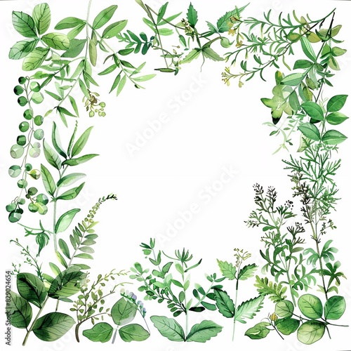 Meadow flowers and grass are painted in watercolor, in the center there is an empty white background