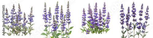 Meadow Sage - Spikes of purple-blue flowers on upright stems attracting bees and butterflies. Isolated on Clear White Background Highly Detailed