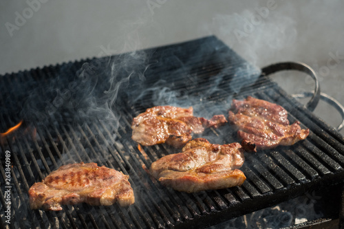 meat, grill, activity, bar-b-q, summer, summer, steak, smoke, prepare, pork meat, picnic, outdoors, meal, lunch, juicy, hot, heat, food, flames, daytime, cookout, cook, chop, camping, bar-b-q