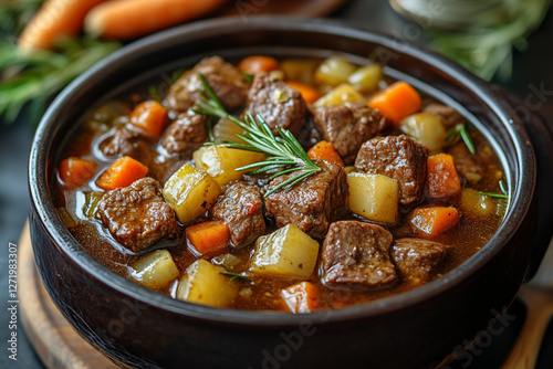 Meat stew with vegetables, beef Burgundy, meat goulash with vegetables.