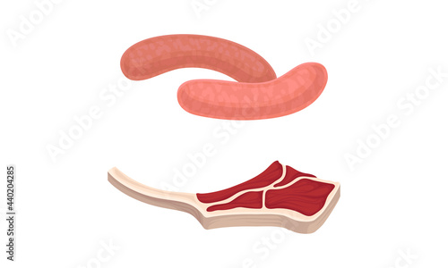 Meat with Sausage and Beef Rib as Foodstuff from Butchery Vector Set