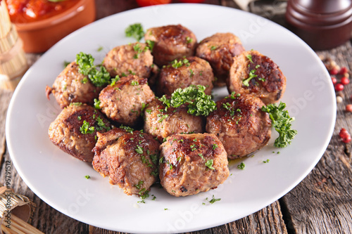 meatball, meat, beef, fried, cooked, herb, food, american, dinner, meal, ball
