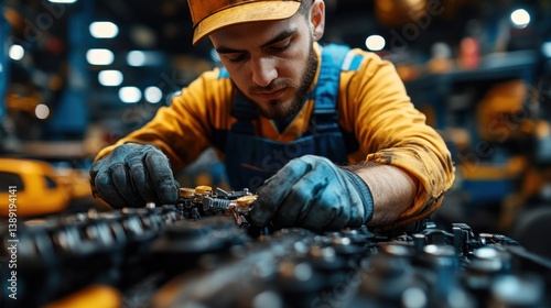 mechanic, repair, engine, workshop, maintenance, automobile, auto, vehicle, service, technician, industrial, machinery, tool, equipment, gear, part, technology, engineering, manufacturing, construction, men at work, labor, man, person, occupation, profession, skilled, expert, glove, focused, concentrated, detail, precision, careful, serious, intense, hard-working, dedicated, professional, job