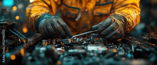 Mechanic Using Wrench to Repair Car Engine in Workshop with Cinematic Lighting and Photorealism