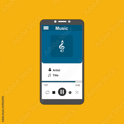 Media player application, app template with flat design style for smartphones, PC or tablets. Clean and modern