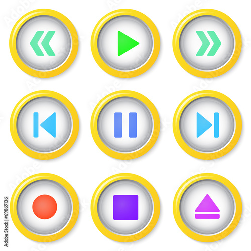 icon, buttons, playing, media, sound, multimedia, audio, display, interface, signs, symbol, play, set, pushing, circle, connection, video, design, music, control, computer keyboard, equipment, element, stop, cyberspace, information, chrome, technology, red, arrow, pattern, digital, web, shape, blue, record, metallic, colours, green, collection, graphic, label, grey, direction, isolated, square, bright, triangle, illustration, vector