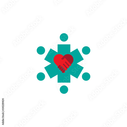 Medic + hands + teamwork + heart. Logo icon vector.