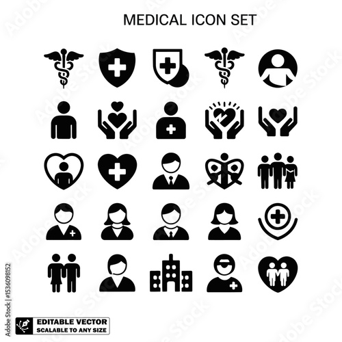 Medical and Healthcare Icon Set – Hospital, Treatment, Emergency, and Wellness Symbols